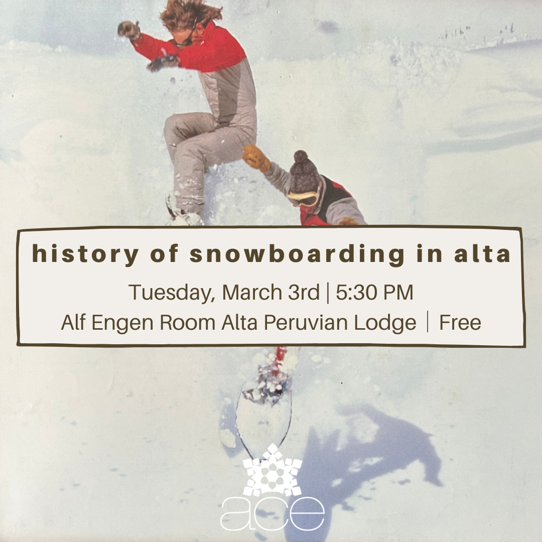 Join us to hear stories from people who experienced snowboarding at Alta and rode the lifts during that time. You’ll also have the chance to view a selection of early snowboards from a local collection.