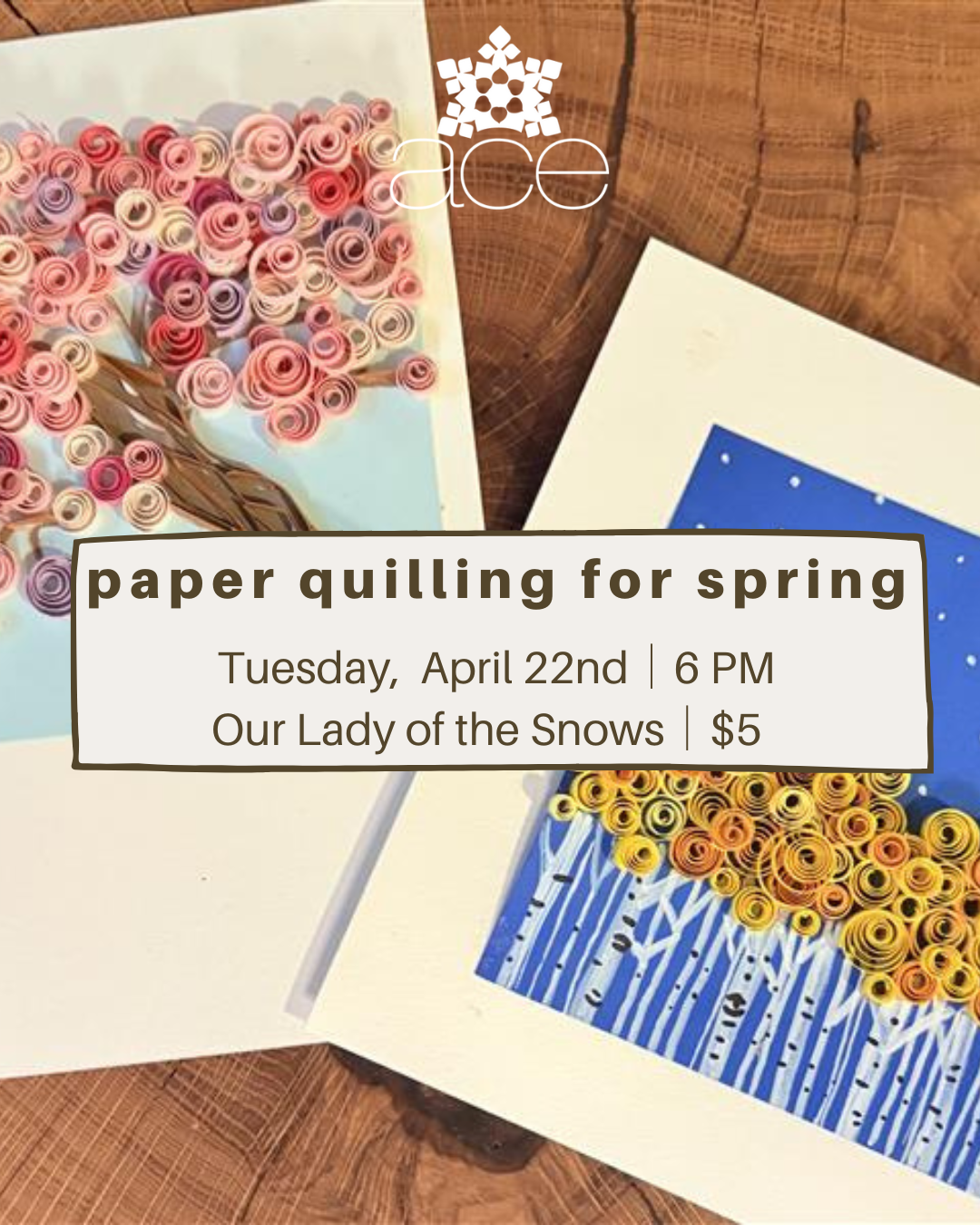In this class, students will learn basic paper quilling techniques in order to create a textured and colorful artwork suitable for framing. Skills such as coiling using a quilling tool and tweezers as well as gluing techniques will be demonstrated. Skills learned can be used to create cards and other artwork at home.