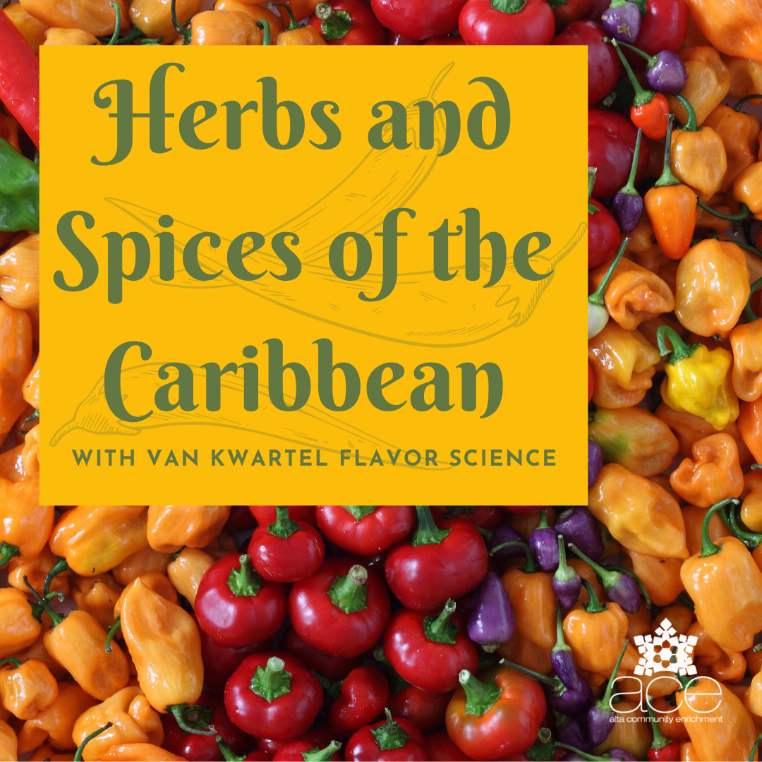 Join ACE and Tracy of Van Kwartel Flavor Science and Cecret Mercantile! After a presentation on traditional ingredients, attendees will create two Caribbean mixes to take home, a wet rub for meats, poultry and vegetables, classically known as "green seasoning" and a chili powder rub that can be customized to the spice levels one desires - and leave with some recipes on how to use the mixes.